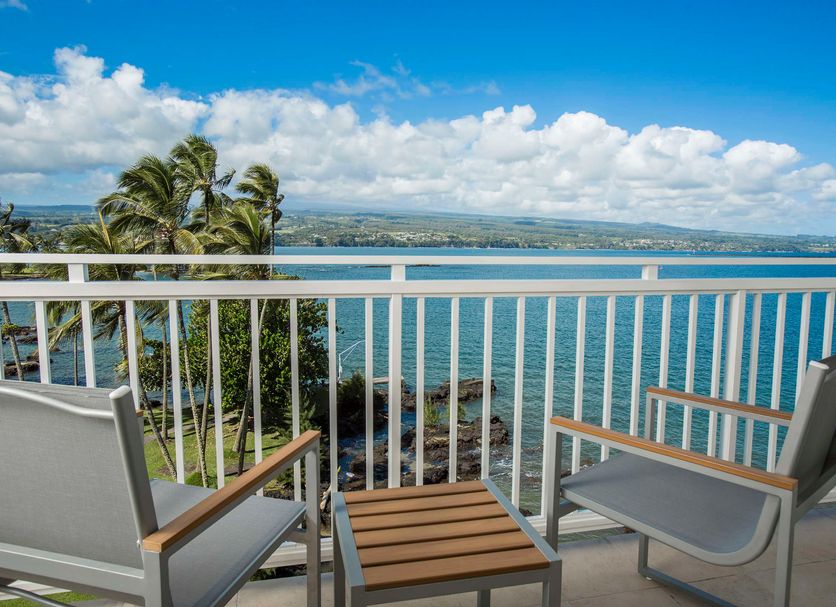 Toutes les chambres de cet hôtel disposent de lits Hilton Suite Dreams, de ports high-tech, de nombreuses prises et de baies vitrées. Certaines chambres possèdent un balcon privé donnant sur l'océan. Des chambres et des installations accessibles aux personnes à mobilité réduite sont également disponibles. Toutes les chambres disposent d'un lit king-size ou queen-size avec du café, d'une télévision à écran plat, d'un bureau, d'un four micro-ondes, d'un réfrigérateur et d'une salle de bains moderne avec baignoire/douche combinées et articles de toilette de luxe. En outre, le complexe se trouve à quelques minutes du marché fermier d'Hilo, du parc d'État d'Akaka Falls et du parc national des volcans d'Hawaï, ainsi que de nombreux magasins, musées et restaurants.